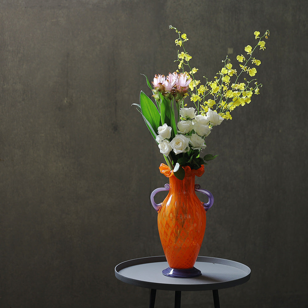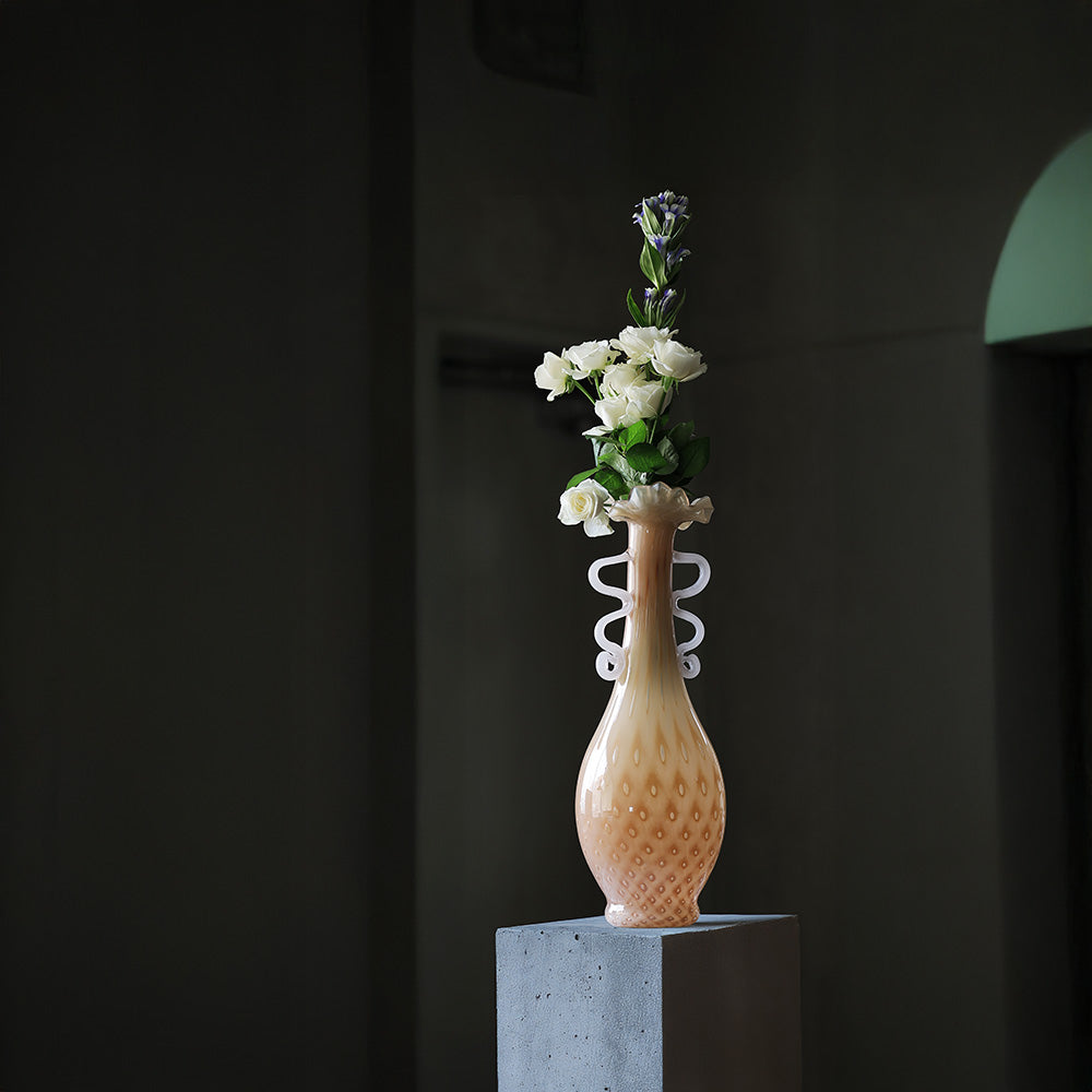 日常の中で気軽に楽しむインテリアとしても、また大切なお客様を迎える場にふさわしい装飾品としても活躍するこのフラワーベースは、アートと実用を兼ね備えた、まさに“至高の一品”と呼ぶにふさわしい存在です。