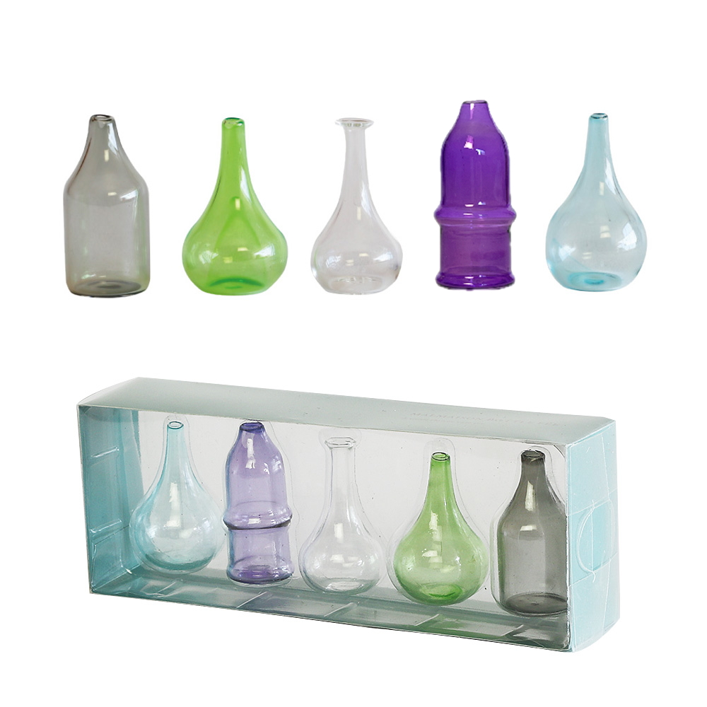 妖精のような小さな、小さなフラワーベースの5個セットです。暖色、寒色、クリアと、好みに合わせてコレクションしたくなる可愛さ。