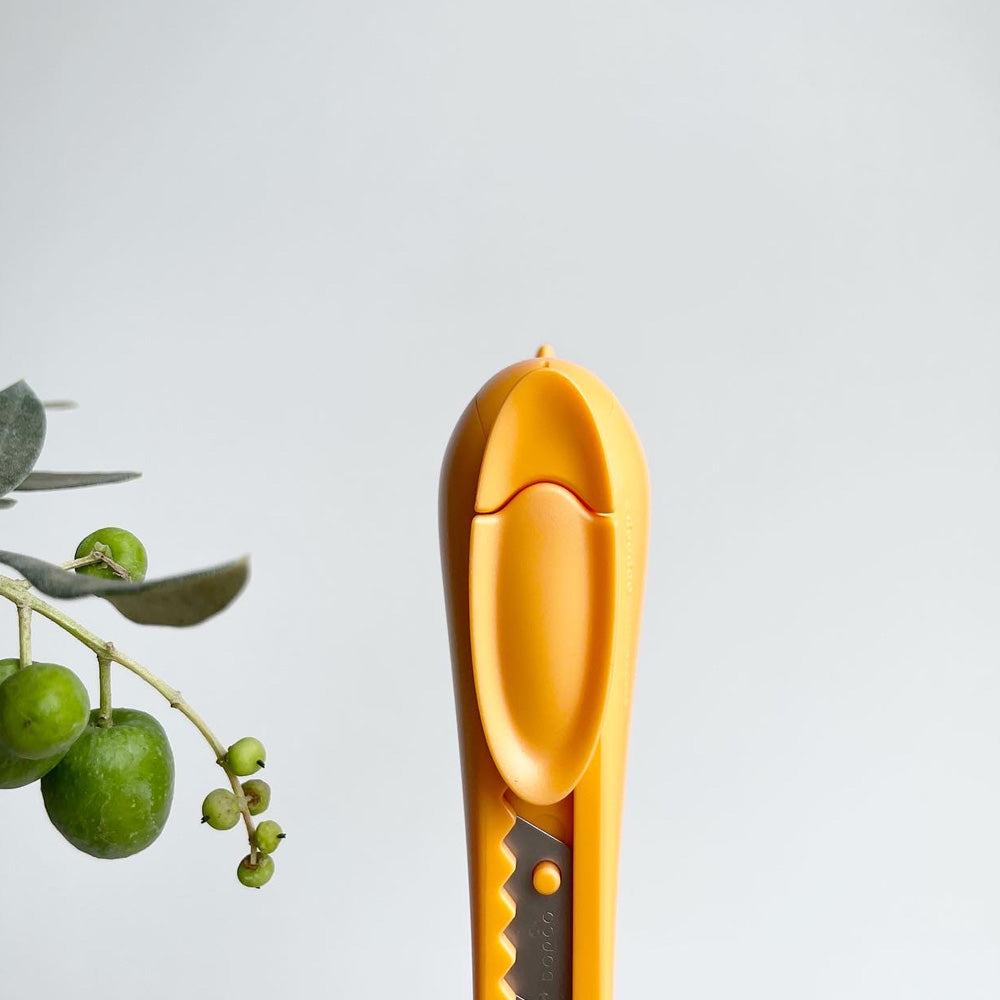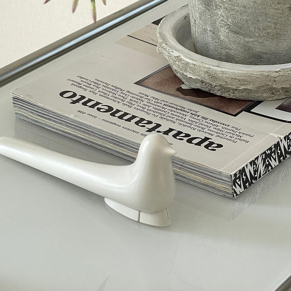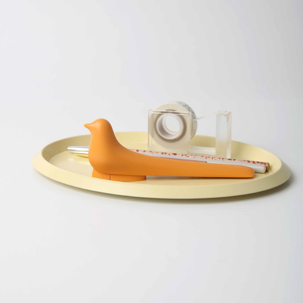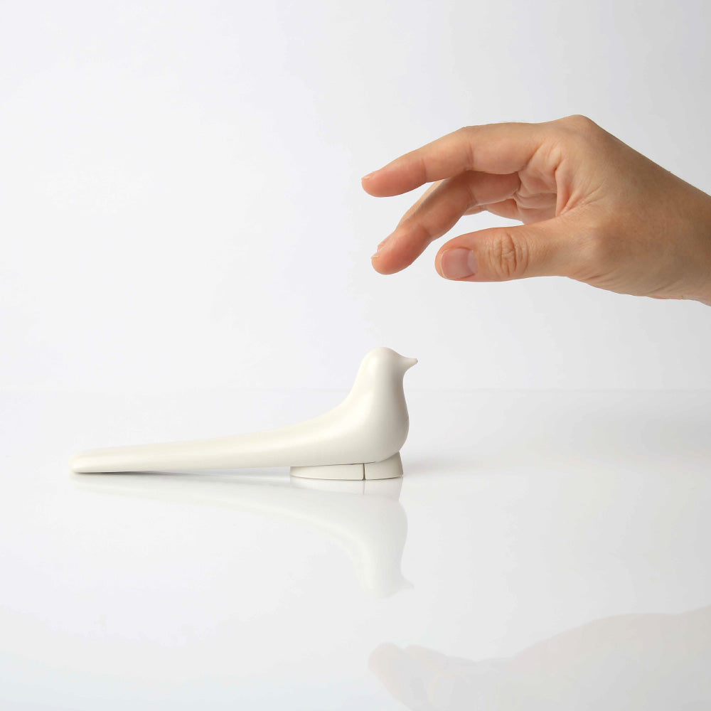 小鳥がちょこんと佇むような愛らしいフォルムの中に、実はカッターナイフの機能を忍ばせたユニークな文具。