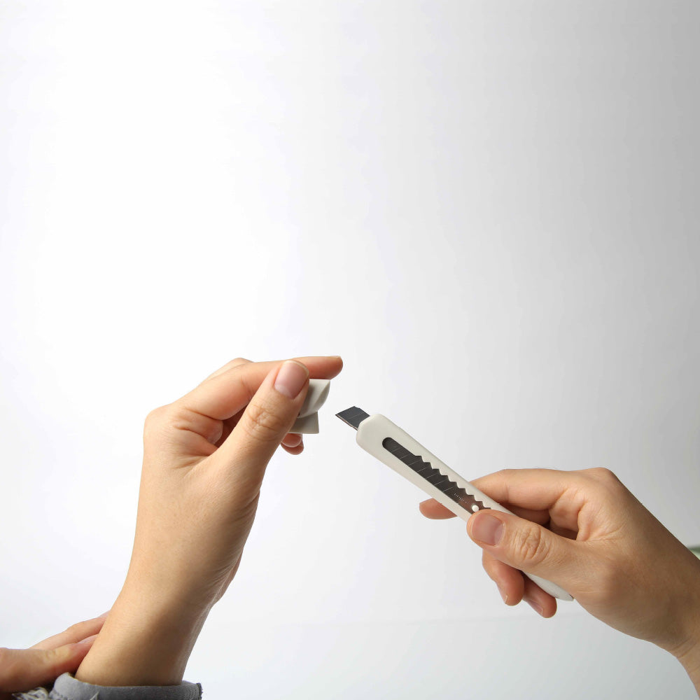 足部分をスライドさせると刃が現れ、封筒を開けたり、段ボールのテープを切ったりと、日常のちょっとした作業をスマートにこなします。