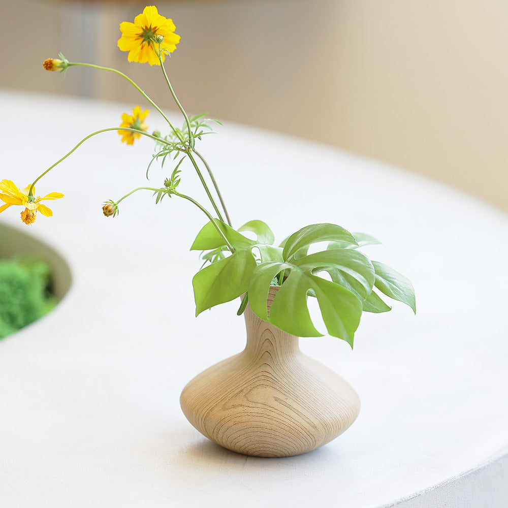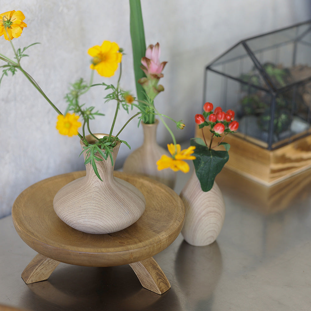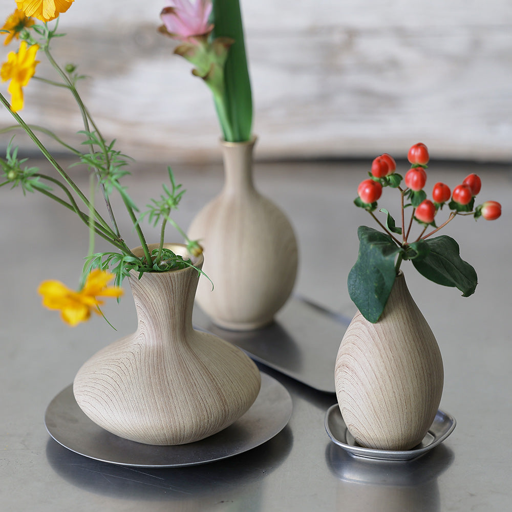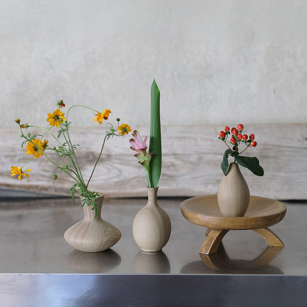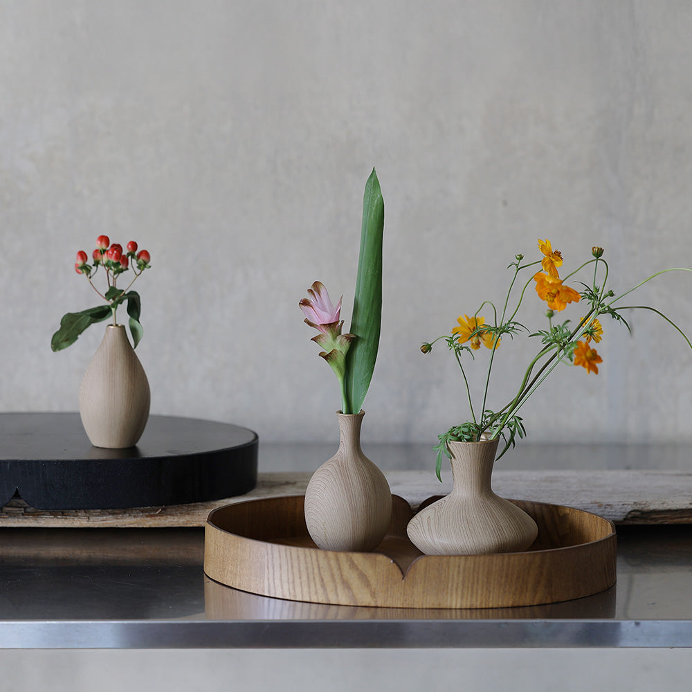 生ける花によって木目の表情、趣を変化させ、飾る場所を選びません。