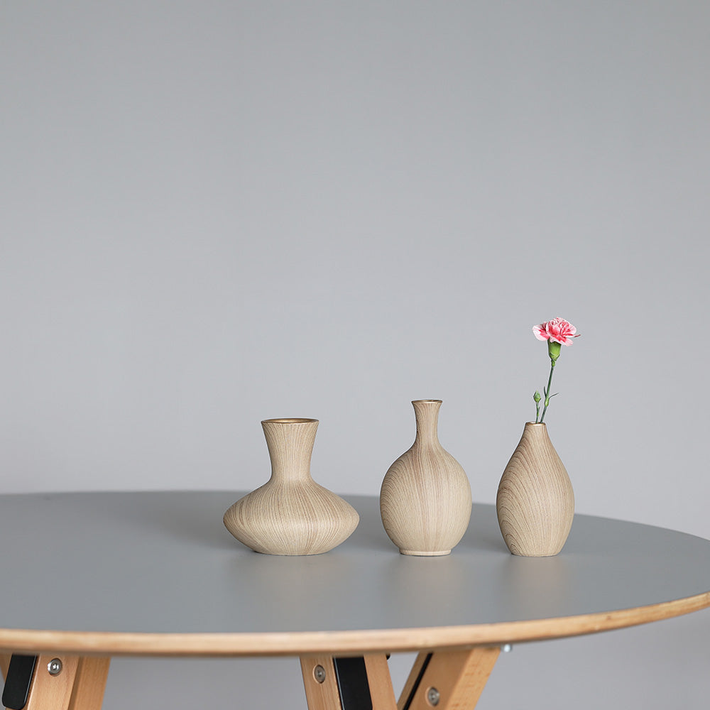 木の模様を丁寧にプリントした陶器製の一輪挿し。