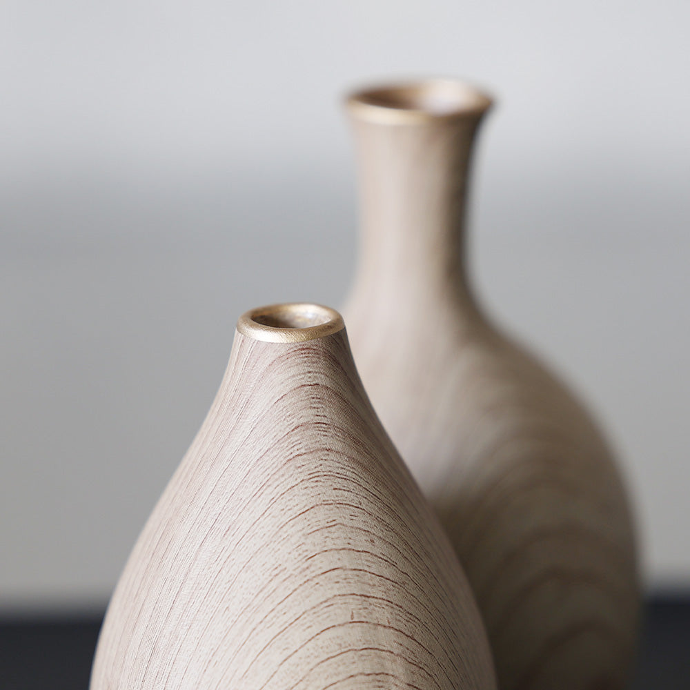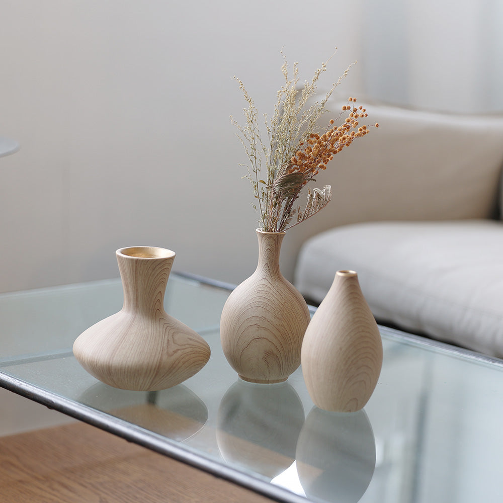 上品な金色のラインと木目が和室や和の空間にも自然に馴染み、季節の花を美しく引き立てます。