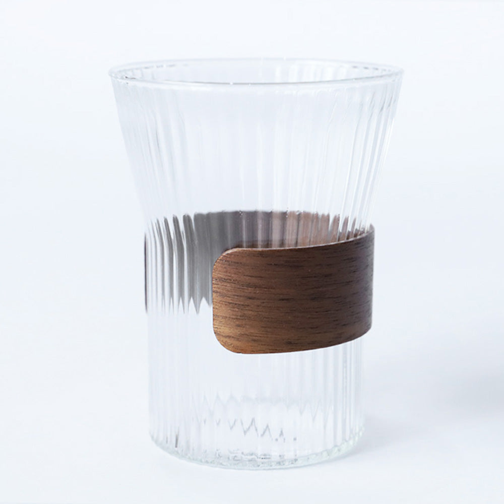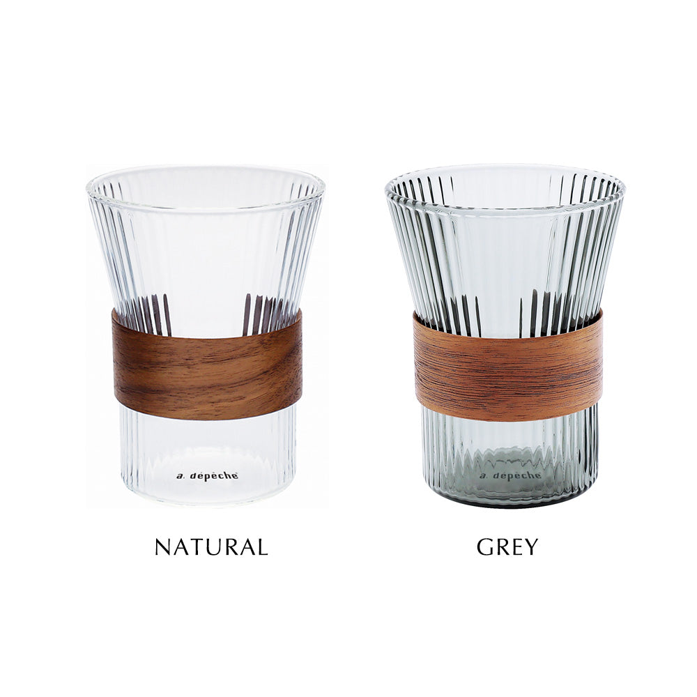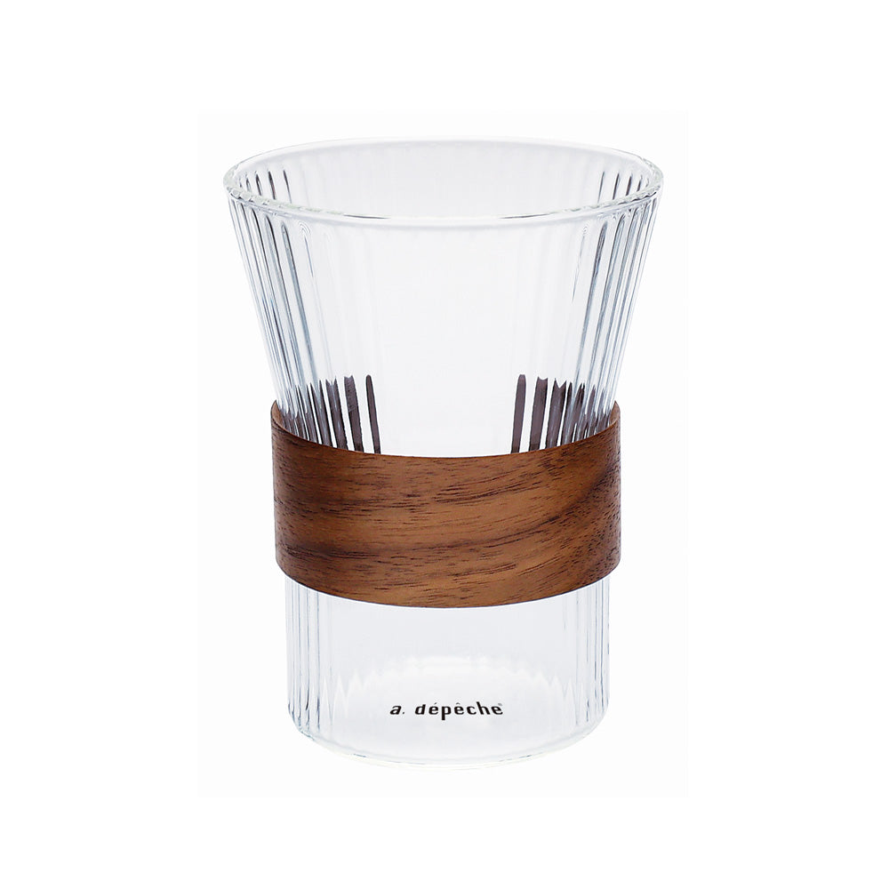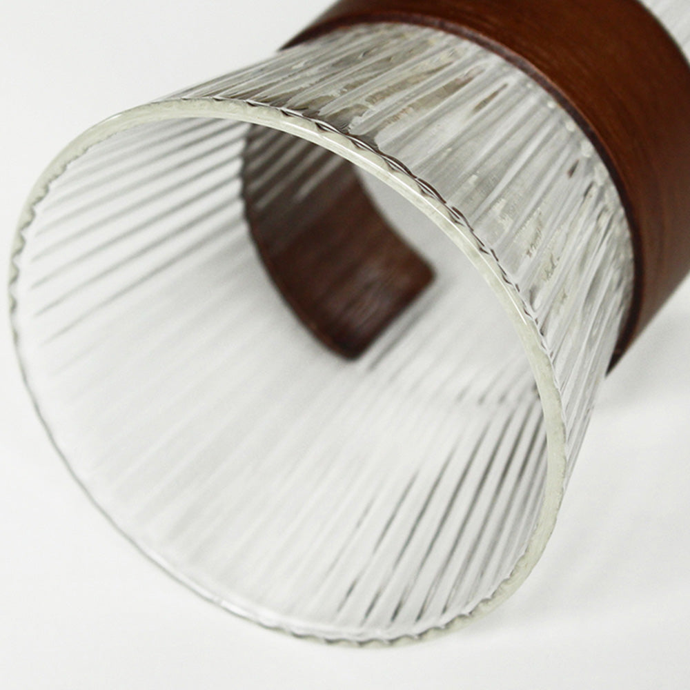 美しいウォルナットの木目と細かくリブが施されキラキラと光るガラスカップの調和をお楽しみ下さい。
