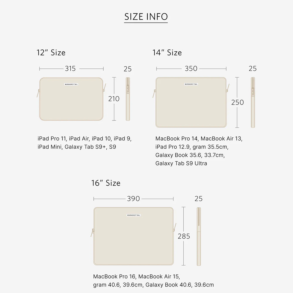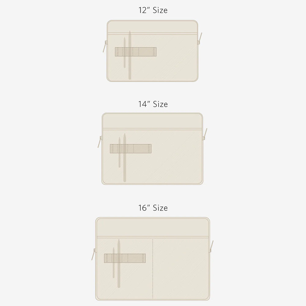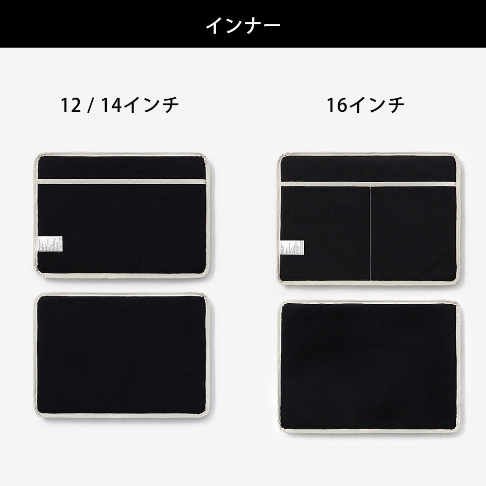 12インチ:315 x 210 x 25mm/9,350円、14インチ:350 x 250 x 25mm/9,350円、16インチ:390 x 285 x 25mm/9,900円