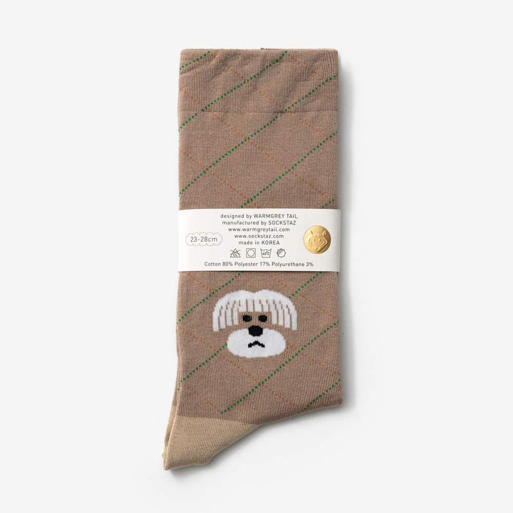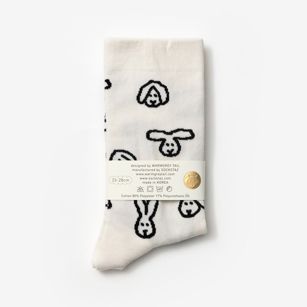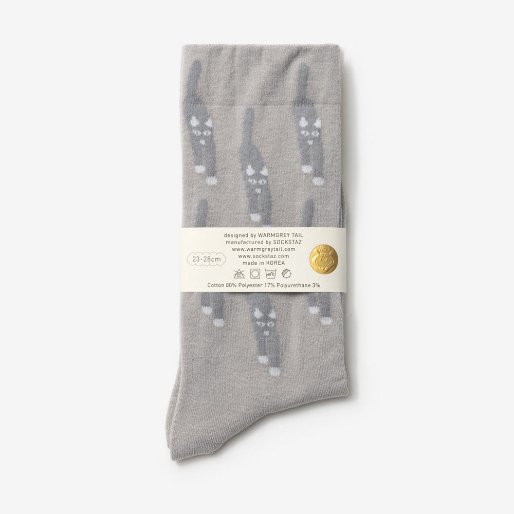 WARMGREY TAILのイラストが織り込まれた靴下。