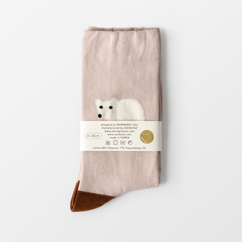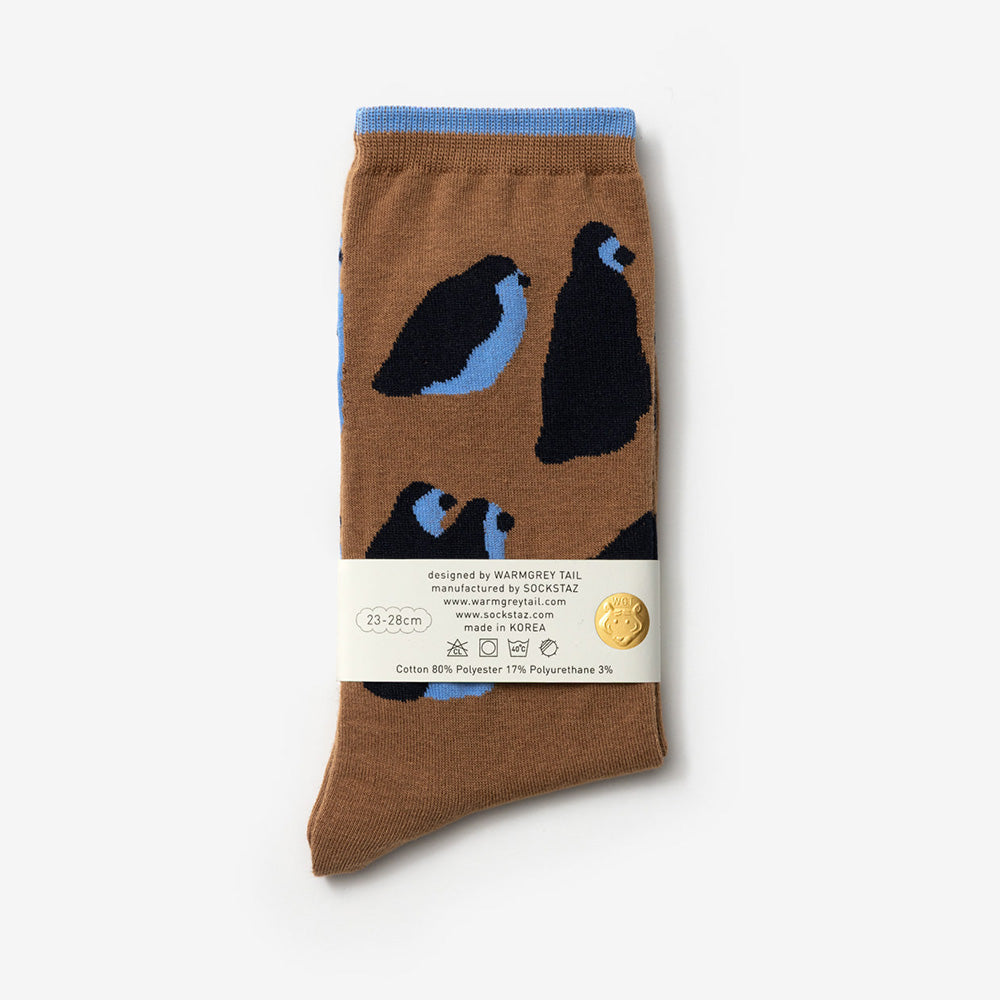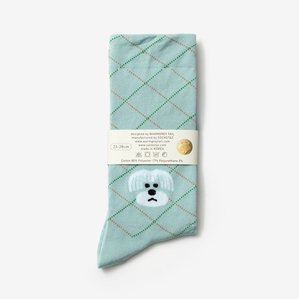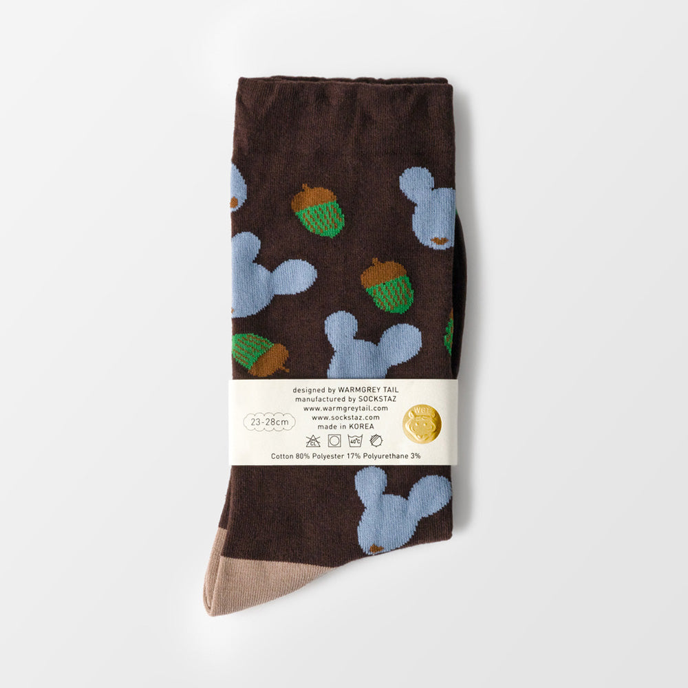 WARMGREY TAILのイラストが織り込まれた靴下。